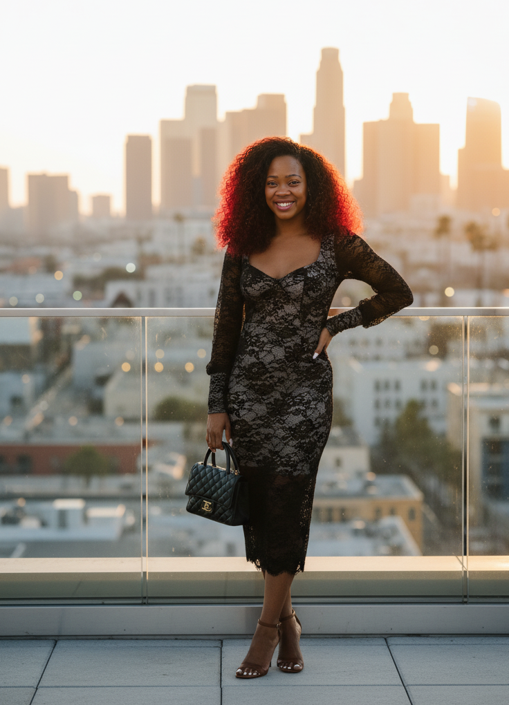 Perfee Lace Sweetheart Neck Long Sleeve Midi Dress