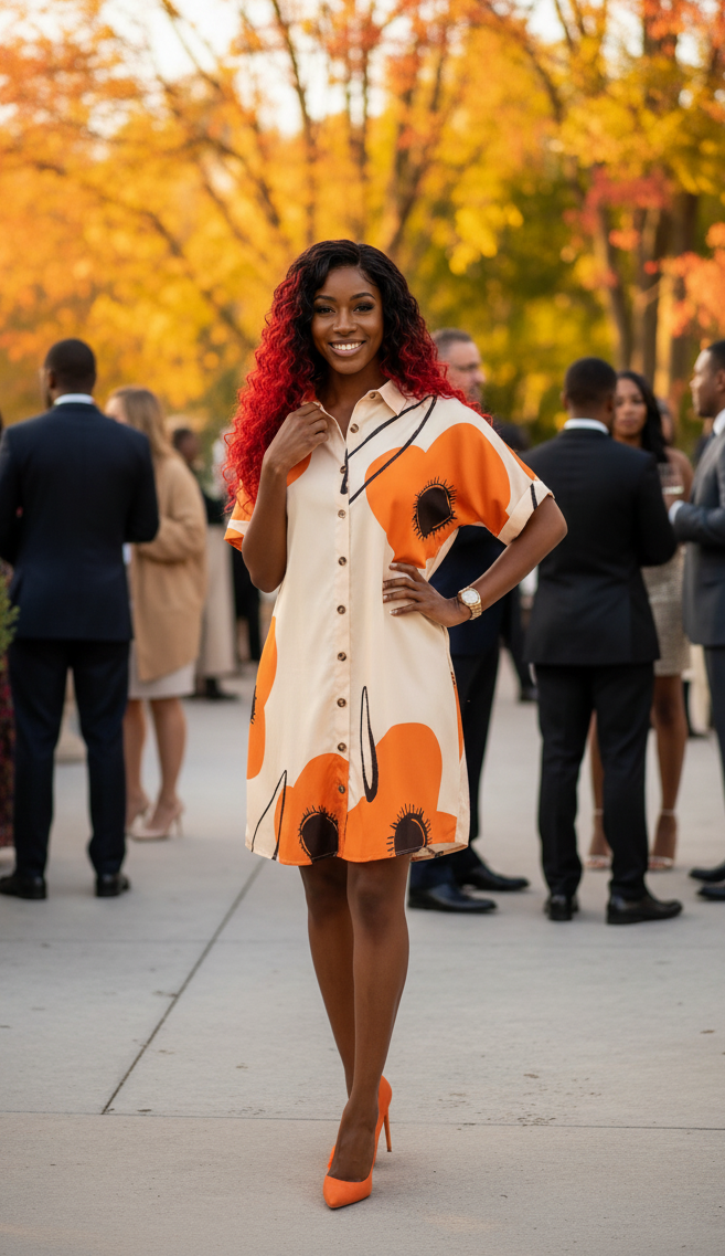 Printed Button-Front Shirt Dress